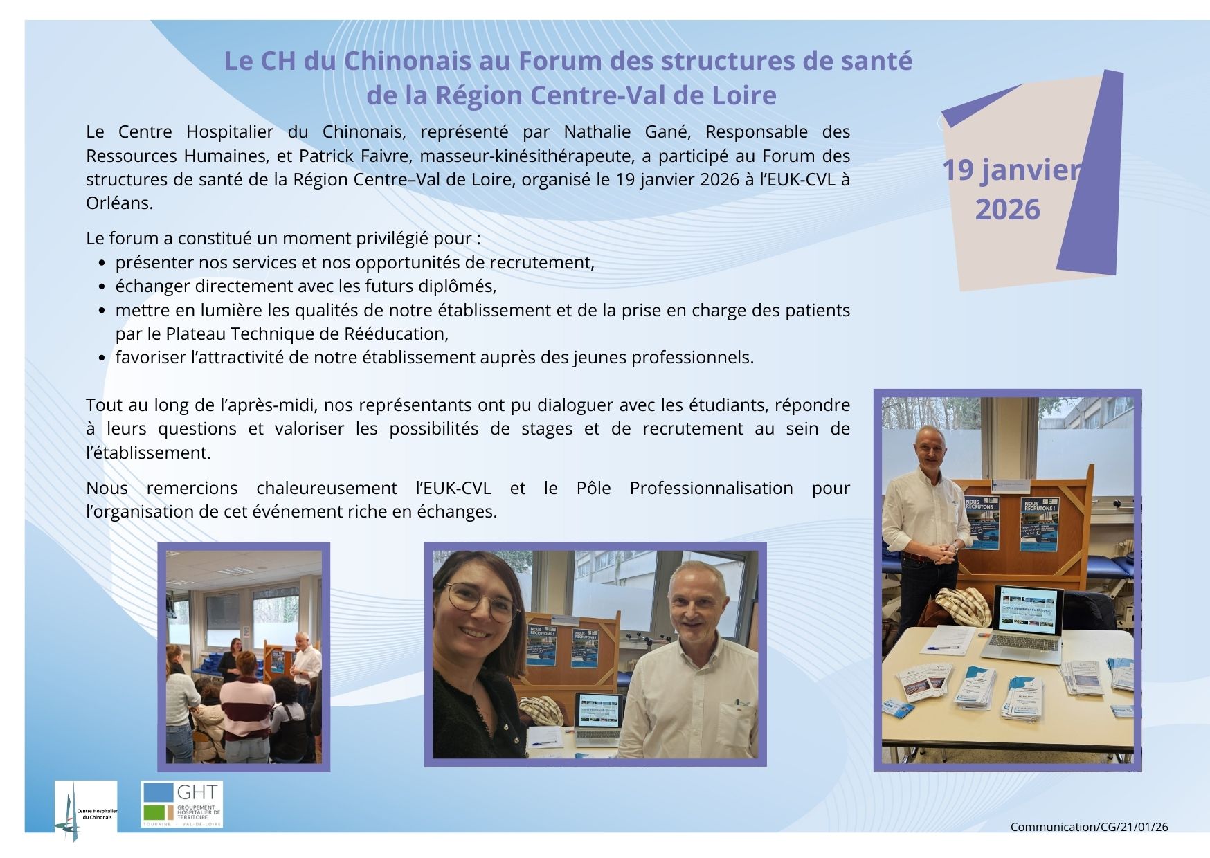 En savoir plus... Le Centre Hospitalier du Chinonais présent au Forum des structures de santé de la Région Centre–Val de Loire !